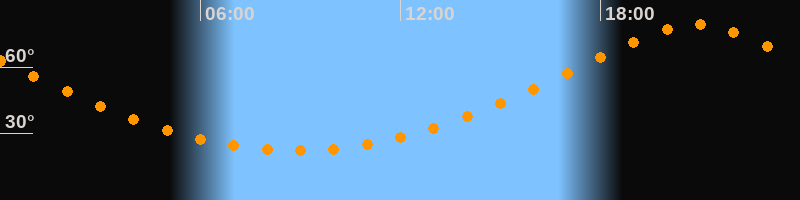 Höchster Stand (Kulmination)20:52 Uhr (h = 79,1°)