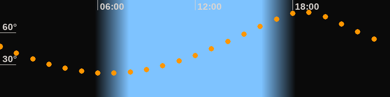 Höchster Stand (Kulmination)18:39 Uhr (h = 79,1°)