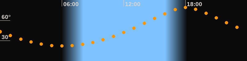 Höchster Stand (Kulmination)18:04 Uhr (h = 79,1°)