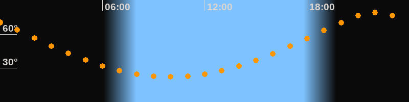 Höchster Stand (Kulmination)21:59 Uhr (h = 79,1°)