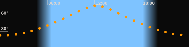 Höchster Stand (Kulmination)12:13 Uhr (h = 79,1°)