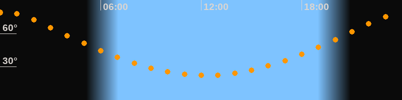 Höchster Stand (Kulmination)00:13 Uhr (h = 79,1°)