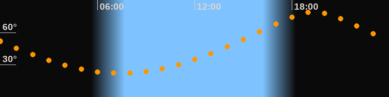 Höchster Stand (Kulmination)19:22 Uhr (h = 79,1°)