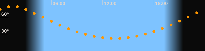 Höchster Stand (Kulmination)01:29 Uhr (h = 79,1°)