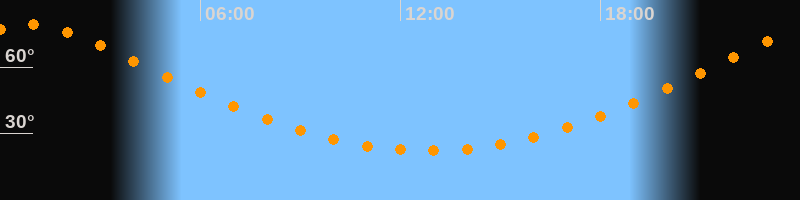 Höchster Stand (Kulmination)00:49 Uhr (h = 79,1°)