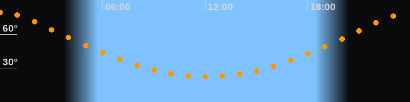 Höchster Stand (Kulmination)00:02 Uhr (h = 79,1°)