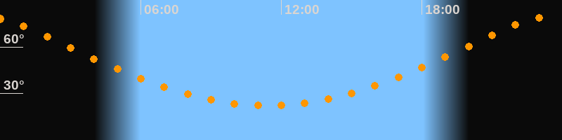 Höchster Stand (Kulmination)23:23 Uhr (h = 79,1°)