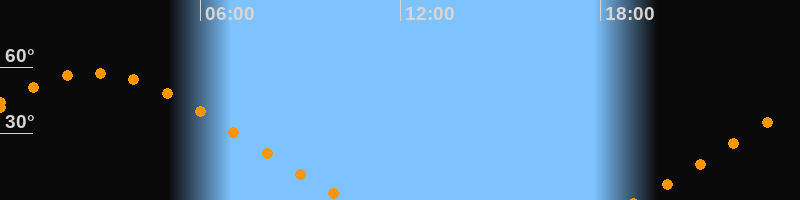 | Aufgang | 19:06 Uhr im Nordosten (αAz = 59,7°) |