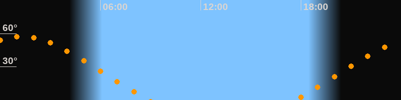 | Aufgang | 17:36 Uhr im Nordosten (αAz = 59,7°) |