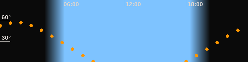| Aufgang | 17:50 Uhr im Nordosten (αAz = 59,7°) |