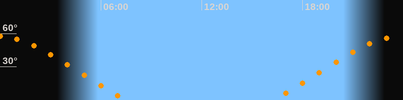 | Aufgang | 16:13 Uhr im Nordosten (αAz = 59,7°) |