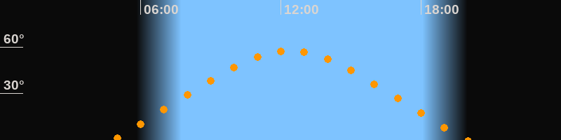 | Höchster Stand (Kulmination) | 12:22 Uhr (h = 57,4°) |