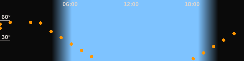 | Aufgang | 18:31 Uhr im Nordosten (αAz = 59,7°) |