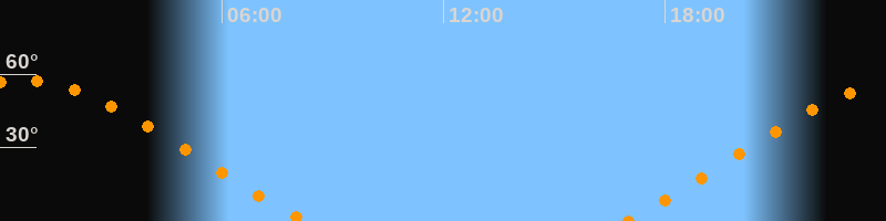 | Untergang | 08:16 Uhr im Nordwesten (αAz = 300,3°) |