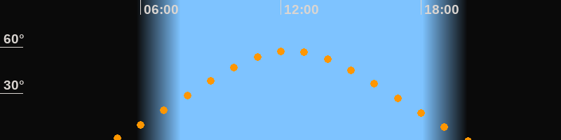 | Aufgang | 04:46 Uhr im Nordosten (αAz = 59,7°) |