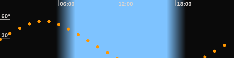 | Aufgang | 20:43 Uhr im Nordosten (αAz = 59,7°) |