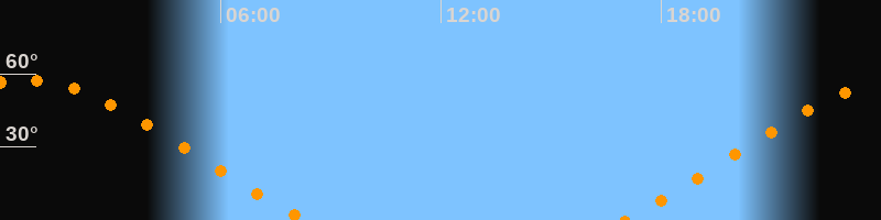 | Aufgang | 17:00 Uhr im Nordosten (αAz = 59,7°) |