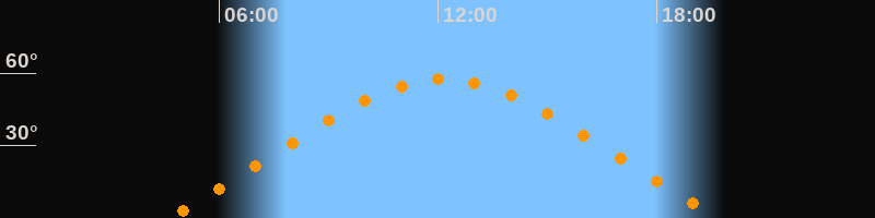 | Höchster Stand (Kulmination) | 12:09 Uhr (h = 57,4°) |