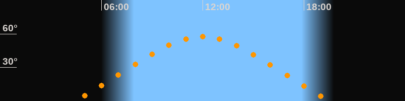 | Höchster Stand (Kulmination) | 11:57 Uhr (h = 57,4°) |