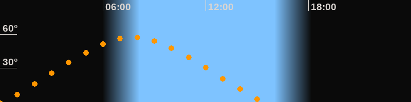 | Höchster Stand (Kulmination) | 07:45 Uhr (h = 57,4°) |