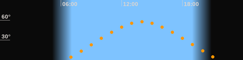 | Höchster Stand (Kulmination) | 14:00 Uhr (h = 57,4°) |