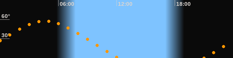 | Untergang | 12:14 Uhr im Nordwesten (αAz = 300,3°) |