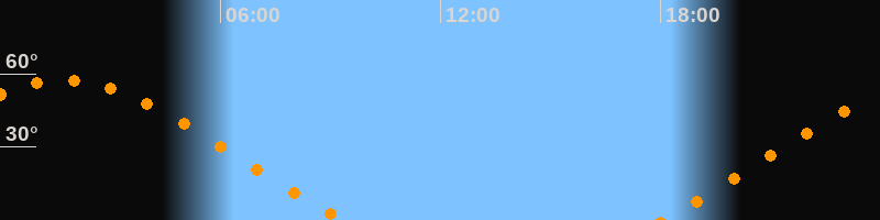 | Aufgang | 18:02 Uhr im Nordosten (αAz = 59,7°) |