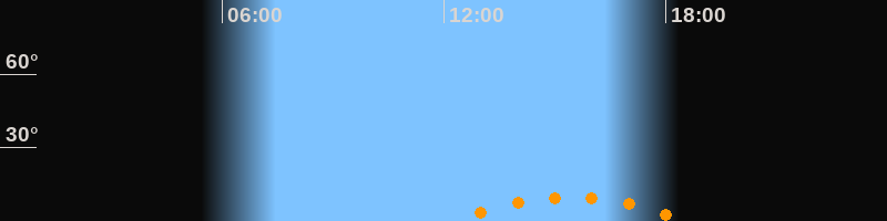 Höchster Stand (Kulmination)15:26 Uhr (h = 9,8°)