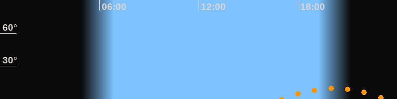 Untergang23:19 Uhr im Südwesten (αAz = 220°)