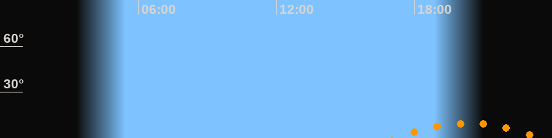 Untergang23:30 Uhr im Südwesten (αAz = 220°)
