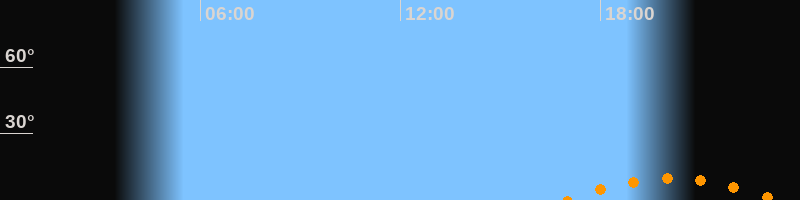 Untergang23:18 Uhr im Südwesten (αAz = 220°)