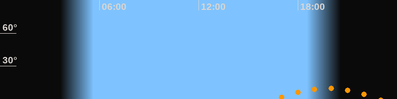 Untergang22:55 Uhr im Südwesten (αAz = 220°)