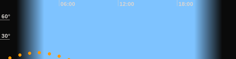 Untergang06:55 Uhr im Südwesten (αAz = 220°)
