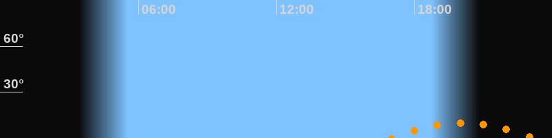Untergang23:16 Uhr im Südwesten (αAz = 220°)