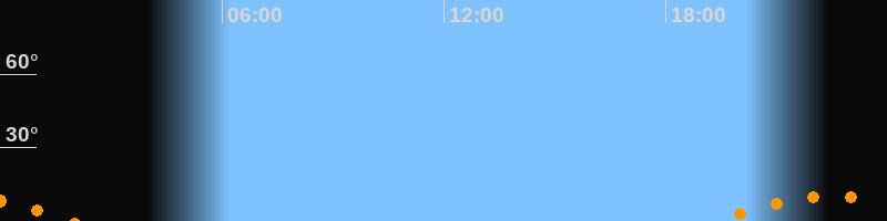 | Aufgang | 19:22 Uhr im Südosten (αAz = 139°) |