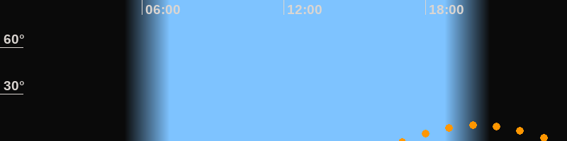 | Untergang | 23:26 Uhr im Südwesten (αAz = 221°) |
