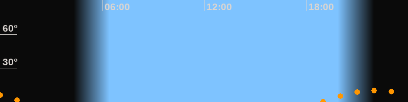 | Untergang | 01:18 Uhr im Südwesten (αAz = 221°) |