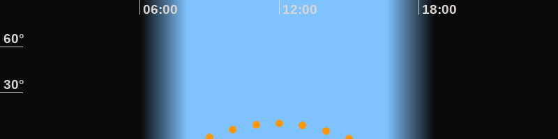 | Höchster Stand (Kulmination) | 11:53 Uhr (h = 10,2°) |