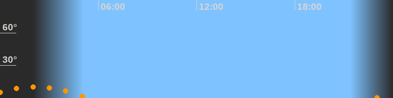 | Untergang | 05:23 Uhr im Südwesten (αAz = 221°) |