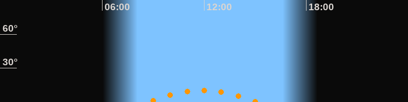| Untergang | 15:09 Uhr im Südwesten (αAz = 221°) |