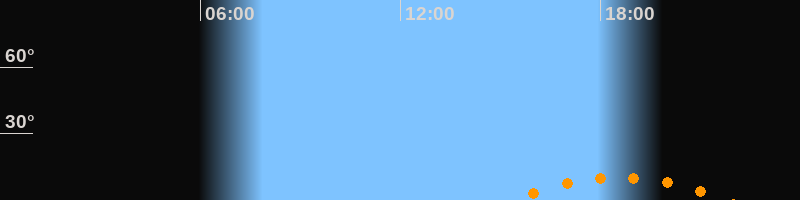 | Aufgang | 15:18 Uhr im Südosten (αAz = 139°) |