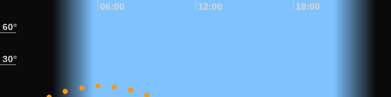 | Untergang | 09:23 Uhr im Südwesten (αAz = 221°) |