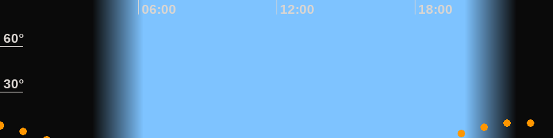 | Aufgang | 19:23 Uhr im Südosten (αAz = 139°) |