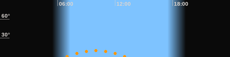 | Untergang | 13:15 Uhr im Südwesten (αAz = 221°) |