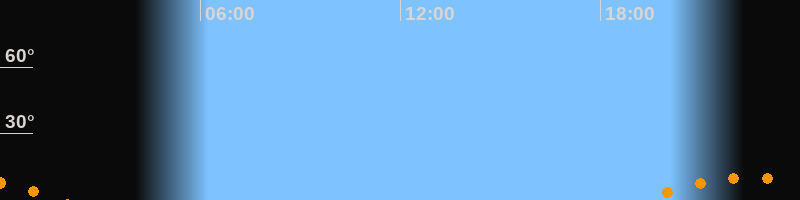 | Aufgang | 19:16 Uhr im Südosten (αAz = 139°) |
