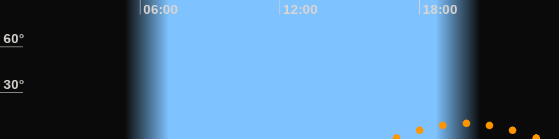 | Aufgang | 16:47 Uhr im Südosten (αAz = 139°) |