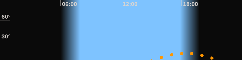 | Aufgang | 15:08 Uhr im Südosten (αAz = 139°) |