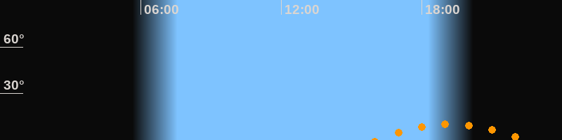 | Untergang | 22:29 Uhr im Südwesten (αAz = 221°) |