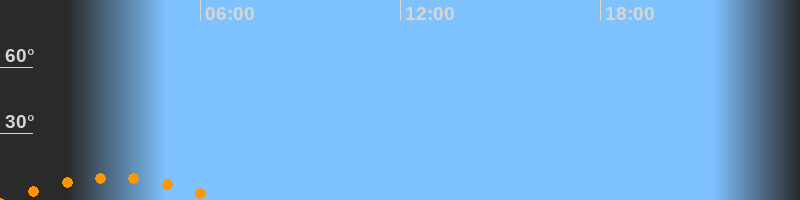 | Untergang | 06:37 Uhr im Südwesten (αAz = 221°) |