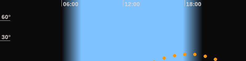 | Aufgang | 15:06 Uhr im Südosten (αAz = 139°) |